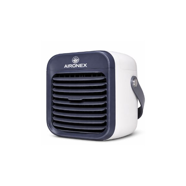De Aironex Draagbare Aircooler is een compacte en draadloze aircooler die zorgt voor directe verkoeling op warme dagen. In plaats van een traditionele airco werkt dit model met waterverdamping, waardoor je geen afvoerslang nodig hebt en hem eenvoudig overal kunt gebruiken, zoals op je bureau, nachtkastje of in de woonkamer.